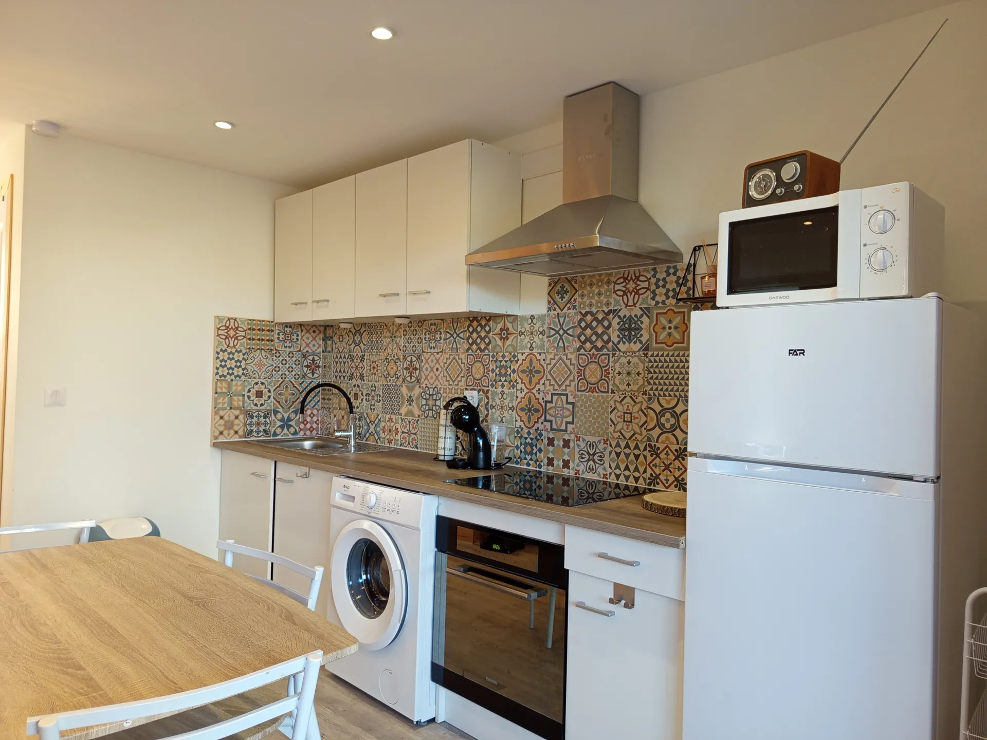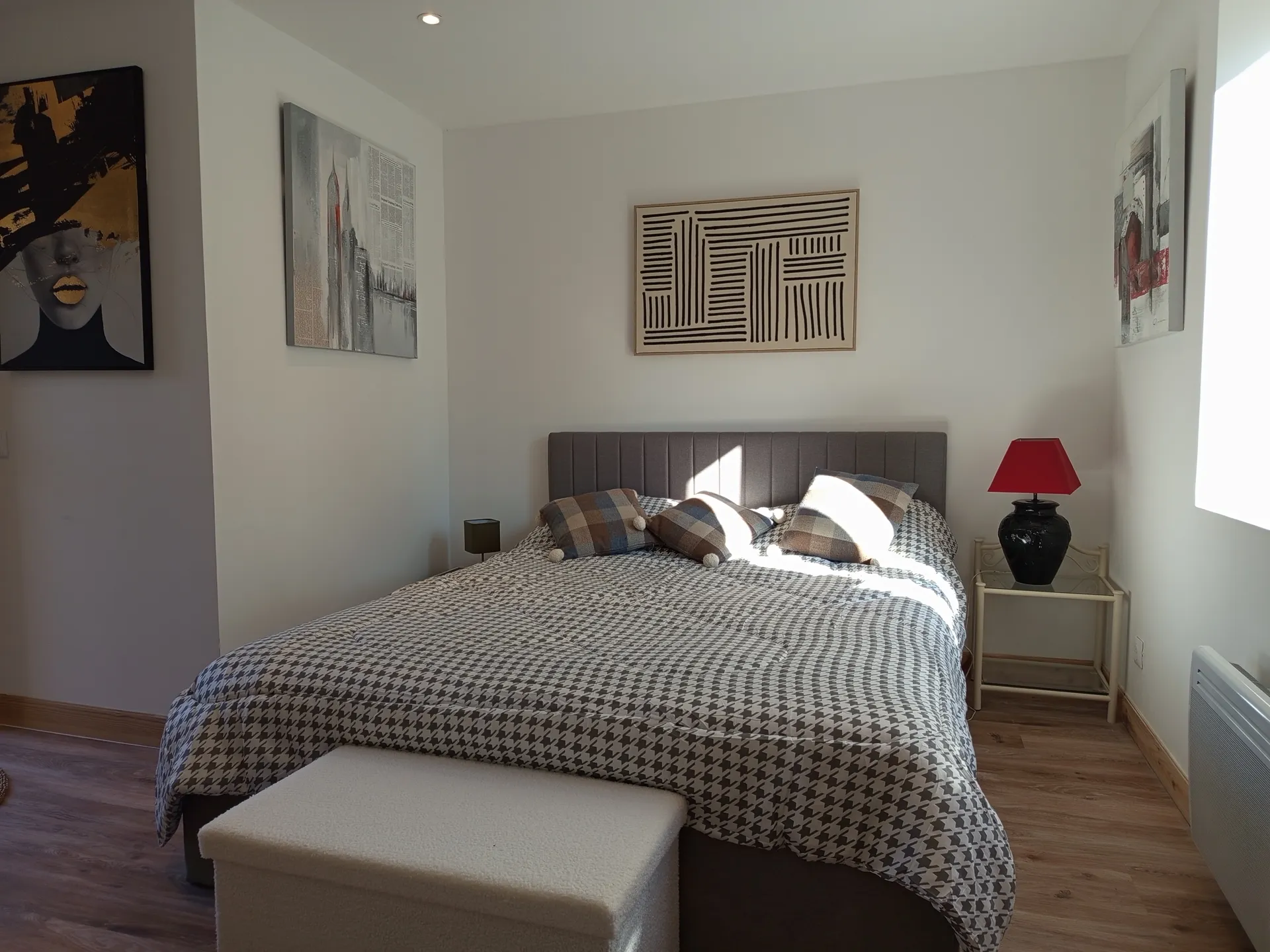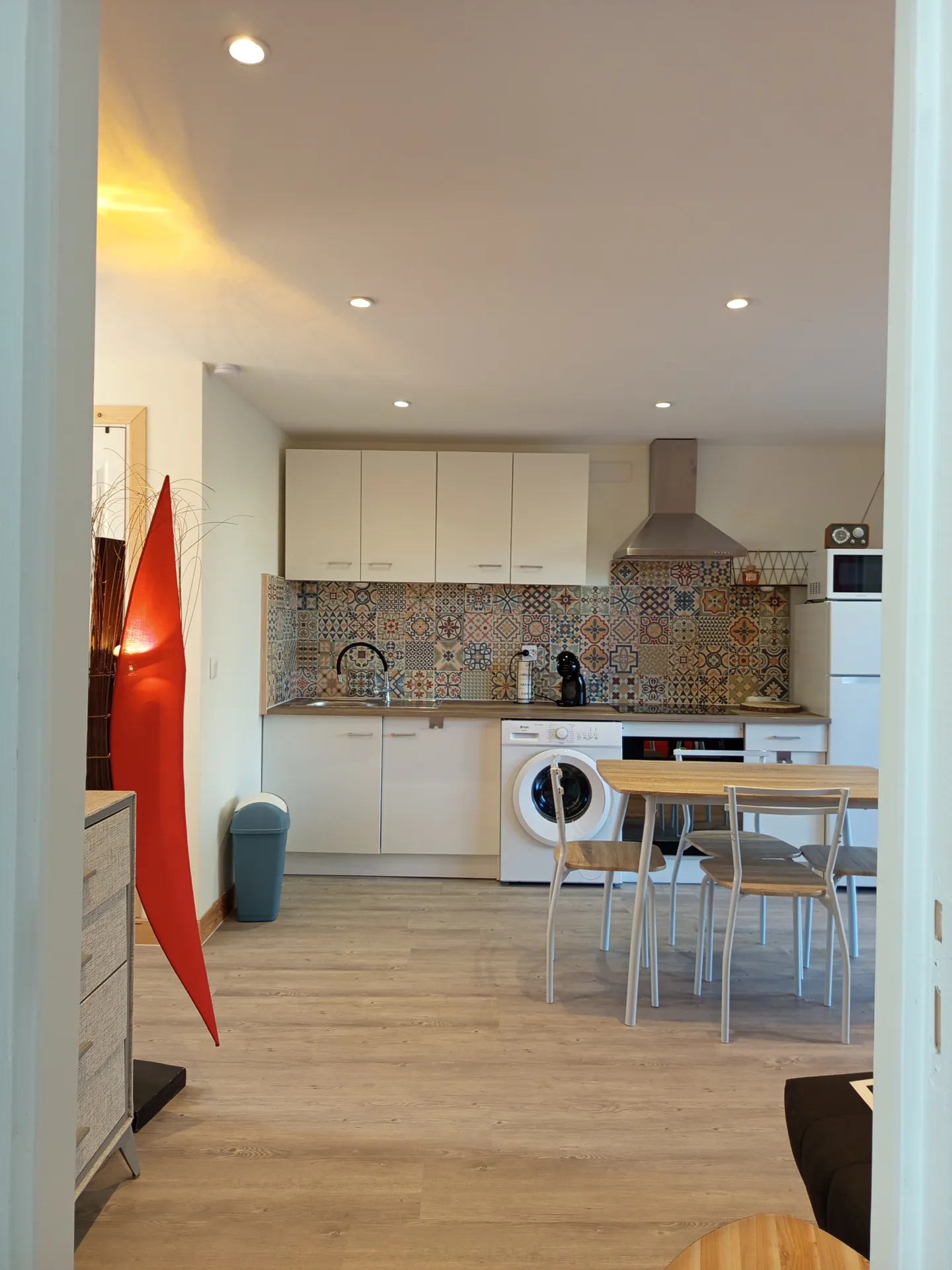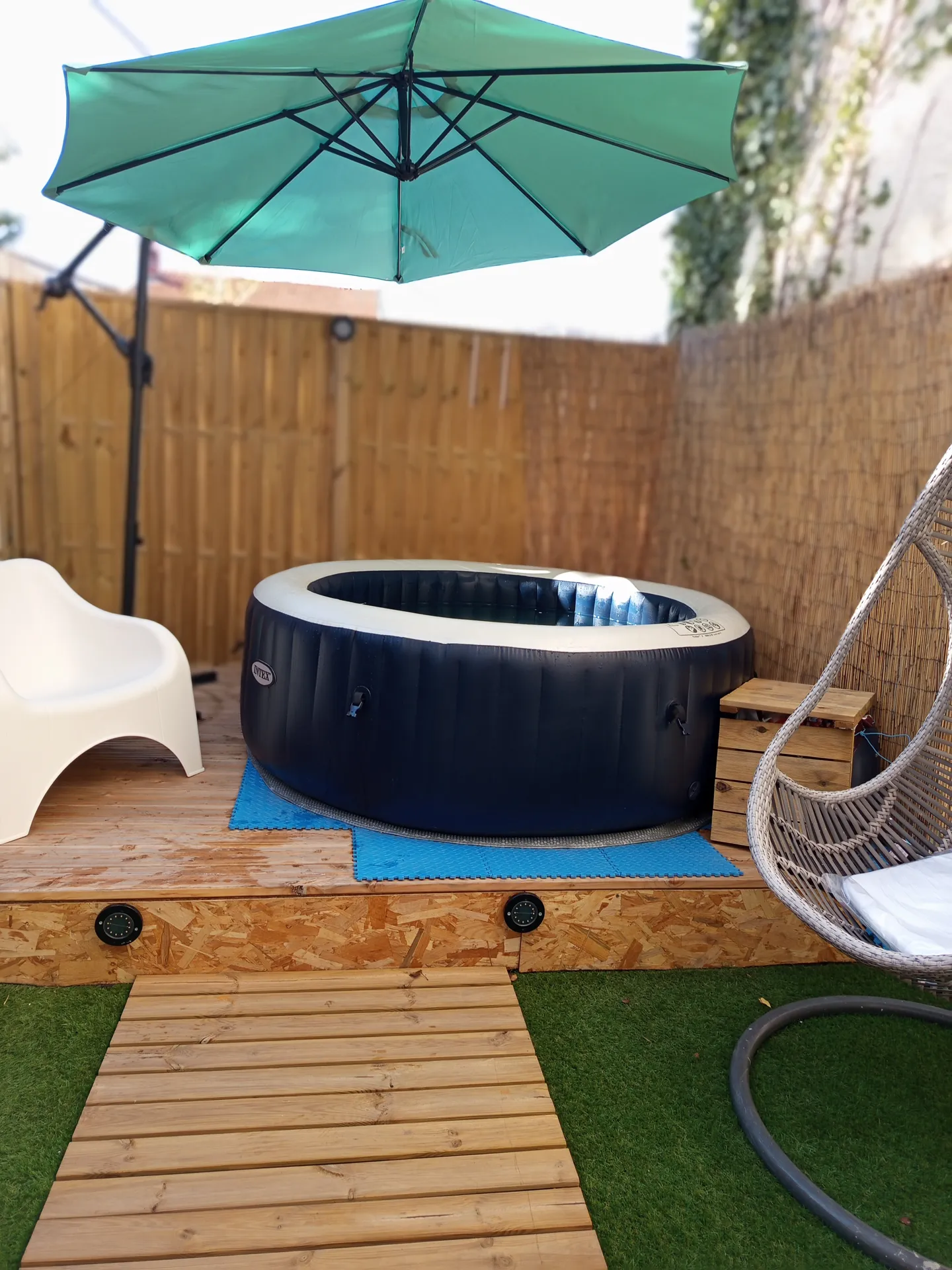Appartement T2 de 48 m² lumineux et moderne en RDC.Grande terrasse avec jacuzzi privé, parfaite pour se détendreParking privatif sécurisé1 chambre avec lit double 160x200Salon avec canapé-lit (clic-clac) pour 2 personnes supplémentairesCuisine entièrement équipée : four, micro-ondes, grille-pain, bouilloire, cafetière filtre, lave-lingeSalle de bain avec douche à l’italienne2 WC indépendants???? Les plusLogement calme et confortable, idéal pour les curistes, couples ou famillesAccès rapide aux commerces, restaurants et thermesWi-Fi, linge de lit et serviettes fournis❤️ À savoirParfait pour un séjour détente avec jacuzzi privé ou une escapade bien-être aux thermes, ce T2 vous offre tout le confort nécessaire dans un cadre moderne et apaisant.