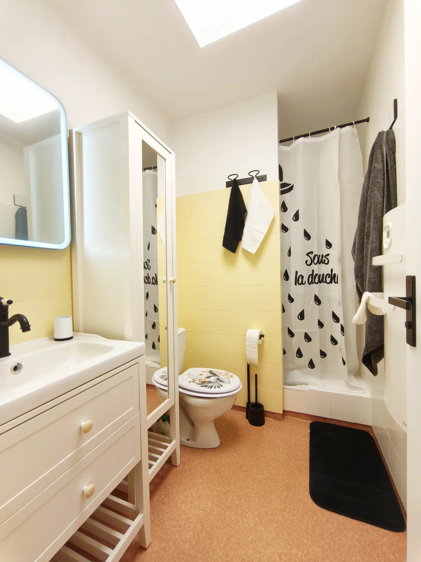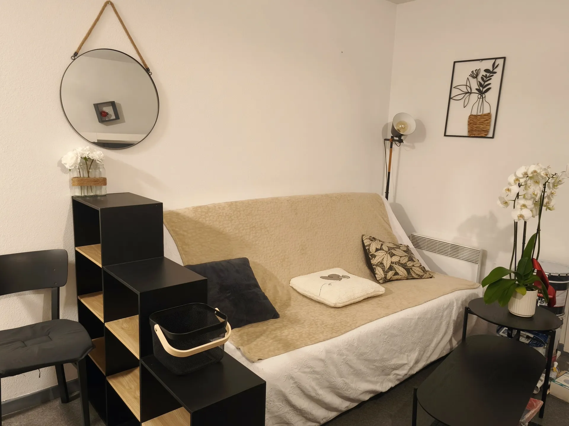 Au 1er étage d'une Résidence calme, place de stationnement gratuit. L'appartement de 38 m2 , situé au 1er étage (2x7 marches séparées par un pallier) est meublé et équipé.