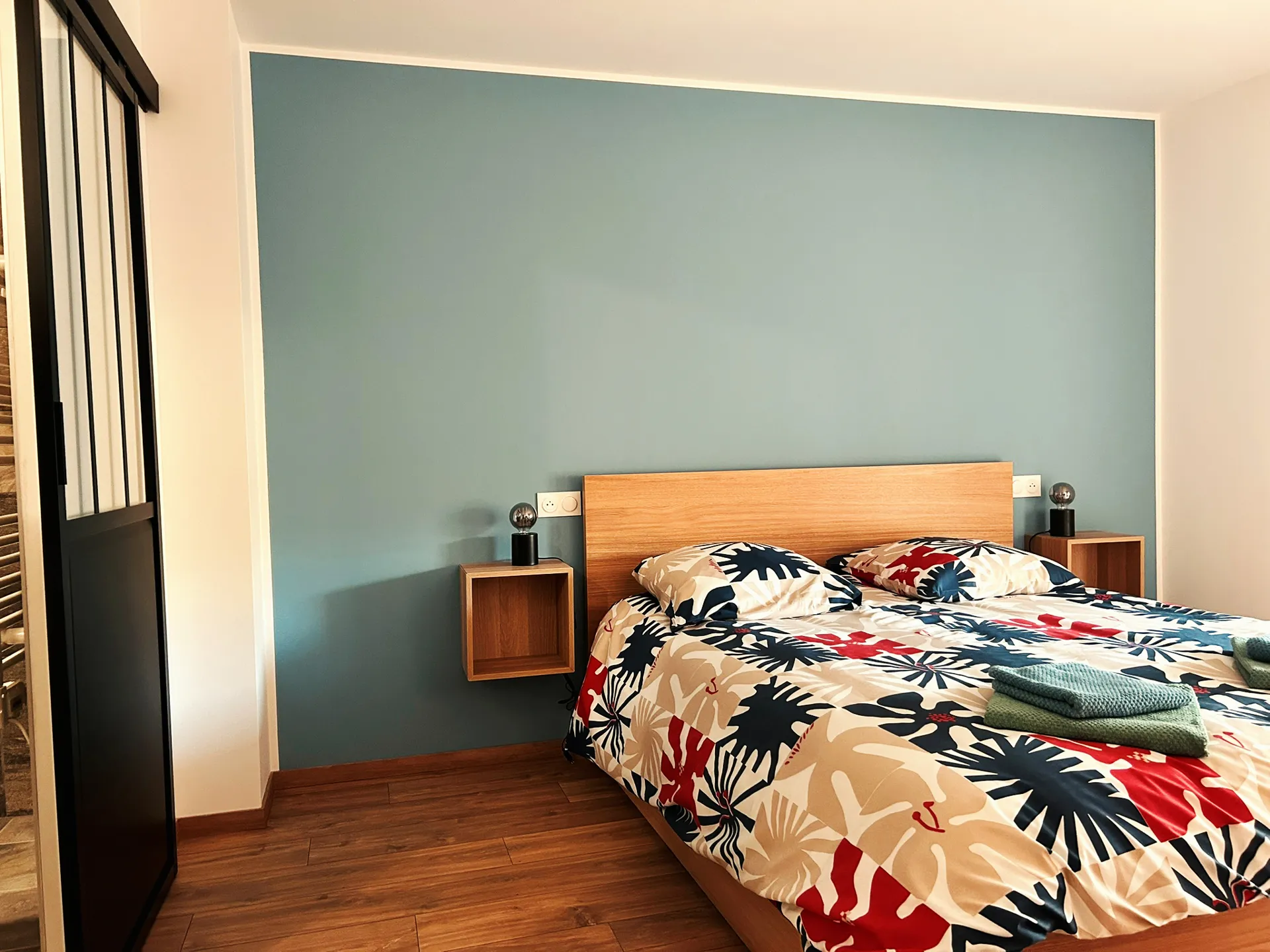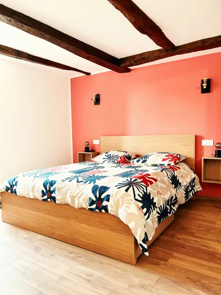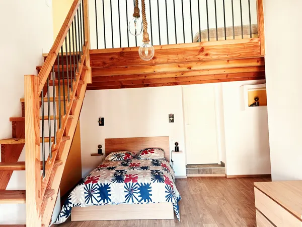deux chambres, l'une avec vue sur le Roc Nantais et l'autre sur le St Alban, chacune disposant d'un lit en 160 cm avec tiroirs pour le rangement et une commode. Chaque chambre dispose de sa propre télévision, d’une salle de bain et d’un WC.