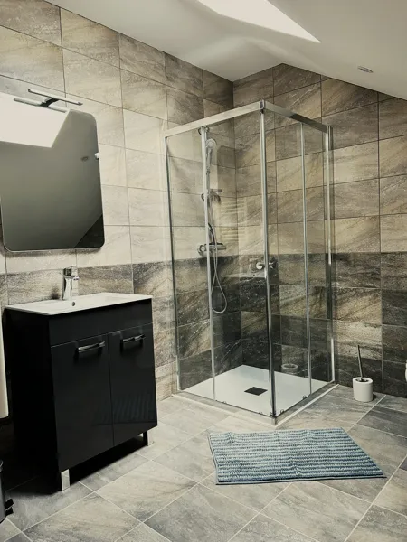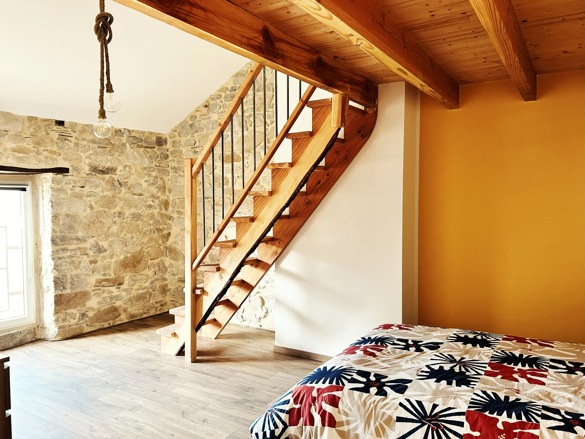 Au dernier étage, sous les toits, le grenier a été aménagé en une chambre spacieuse, pleine de charme avec son mur en pierre apparente et sa vue sur le St Alban. Cette chambre dispose d'un lit en 140 cm, d’une télévision et d'une grande salle de bain avec WC. Une mezzanine accueille deux lit en 90 cm, idéal pour des enfants ou deux voyageurs supplémentaires.