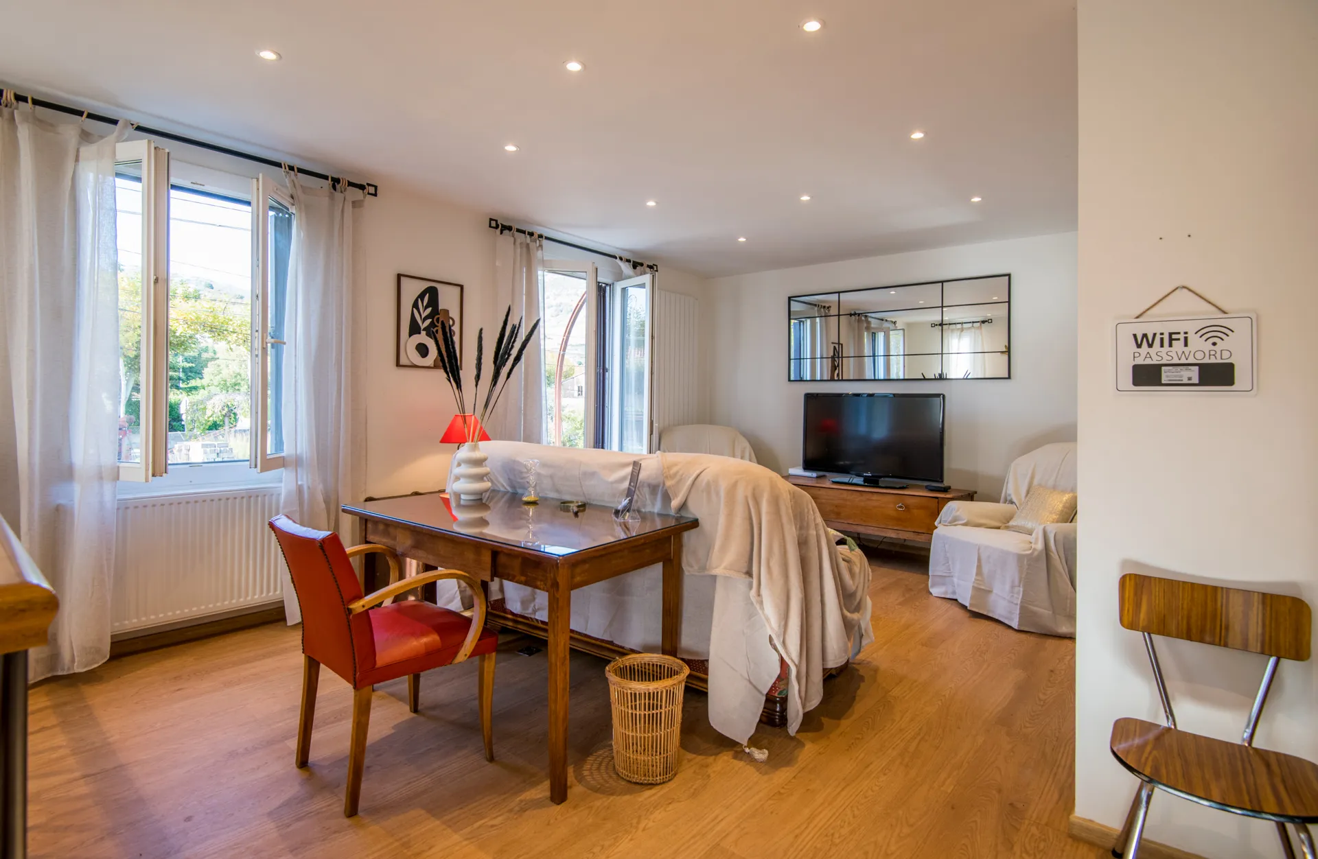 La Maison Margot vous accueille dans un cadre chaleureux et authentique, alliant charme de l’ancien et confort moderne. Elle dispose de trois chambres équipées de lits en 140, parfaites pour un séjour en famille ou entre amis. Vous y trouverez une salle de douche fonctionnelle, deux toilettes pratiques, et une cuisine entièrement équipée pour six personnes. La pièce à vivre spacieuse et lumineuse, mêlant harmonieusement ancien et moderne, est idéale pour se détendre et partager des moments conviviaux.