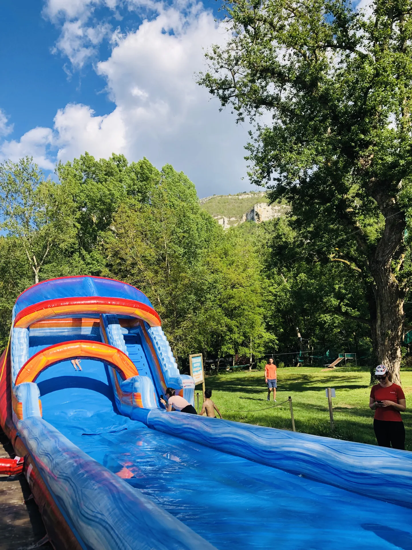 ESPACE ENFANTS dès 3 ans : un filet géant, un toboggan aquatique de 31 m de glisse vertigineuse, des structures gonflables, et des karts à pédales. Mais aussi, le « Bambino » : un parcours comme les grands ! Equipé d'un harnais, chacun peut tester ses capacités acrobatiques et défier les lois de l'équilibre. Avec l'aide de leurs parents au sol, ce parcours grimpe jusqu'à 2 mètres de haut et offre divers jeux d'équilibre et de grimpe.