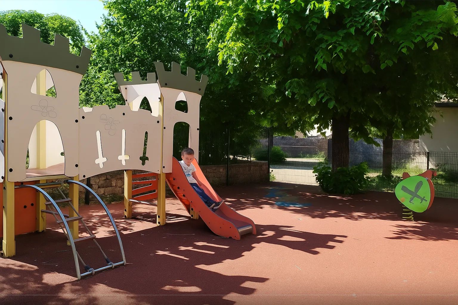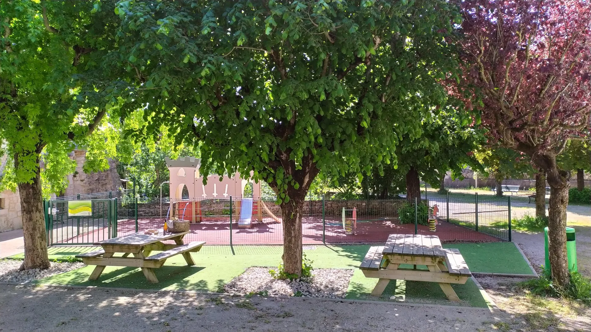 Son grand château en bois, ses toboggans et ses jeux à ressort stimulent l’imagination et la motricité des enfants dans un cadre ombragé et sécurisé.Le sol souple et coloré assure confort et sécurité, tandis que les arbres alentour apportent fraîcheur et sérénité aux familles.Une halte ludique et conviviale, idéale pour une pause entre deux découvertes du patrimoine templier et hospitalier du Larzac.