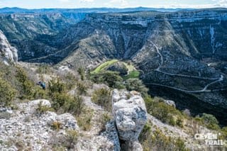 Plus de six heures de parcours, quelques pentes ascendantes à 7% : voici un circuit pour cyclos chevronnés. Mais quelle récompense ! Avec la ligne bleue des Cévennes en toile de fond, cette randonnée riche en paysages somptueux atteint son point d’orgue dans la descente puis la remontée du cirque de Navacelles, véritable curiosité géologique creusée dans un méandre de rivière