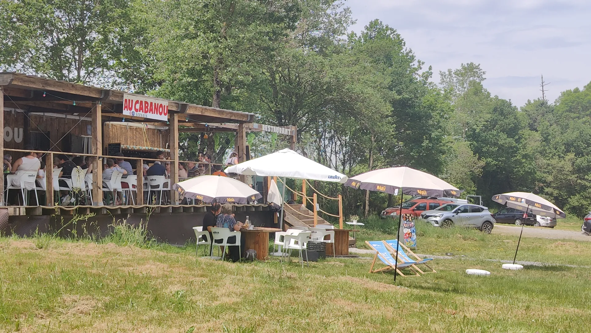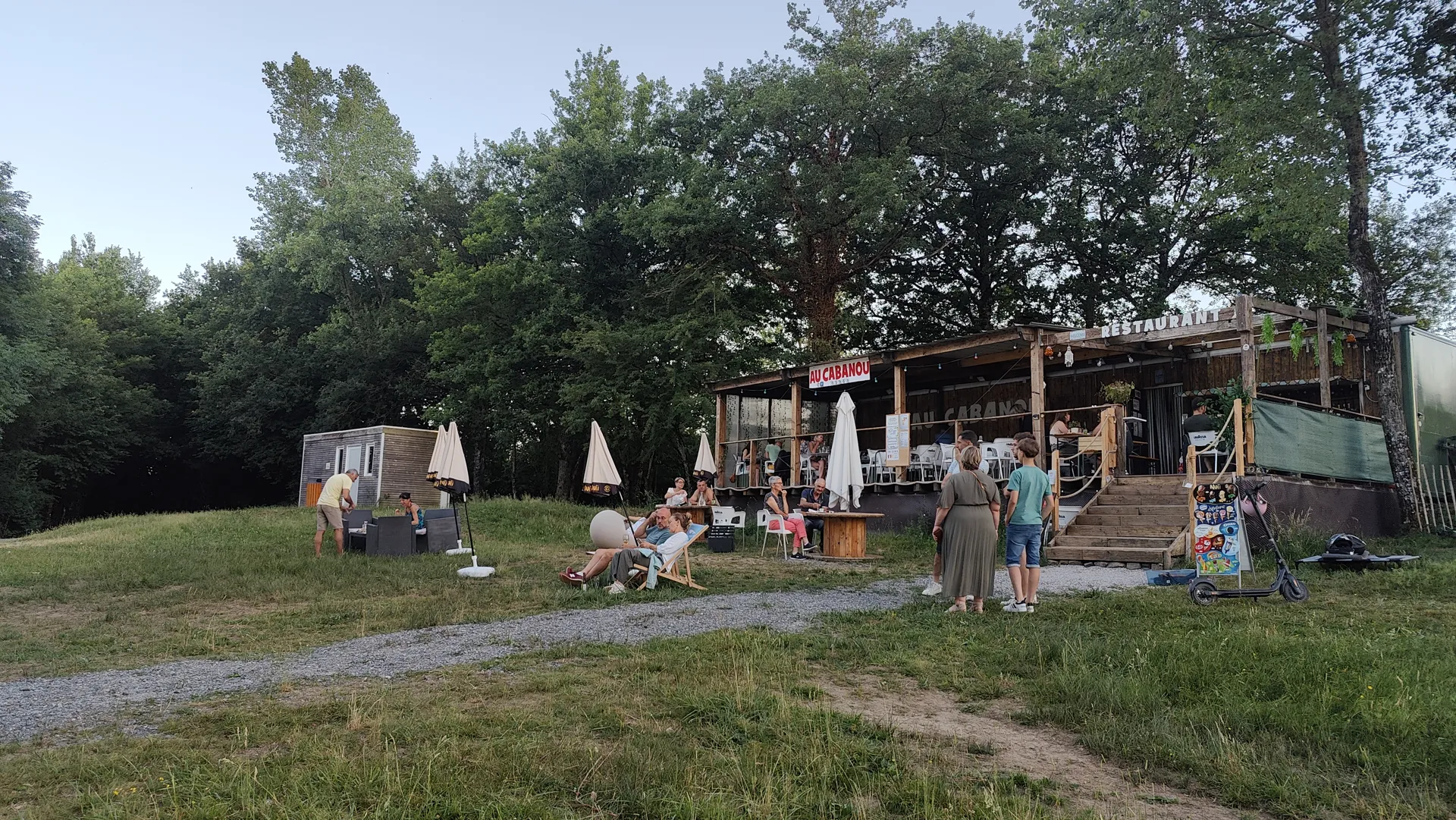 Au beaux jours, Sandy et Mélanie vous accueillent au bord du lac, où elles ont créé un environnement simple, chaleureux et préservé. Sur la terrasse, on se régale d'une cuisine concoctée avec des produits frais. En vedette, un irrésistible fish'nchips et frites maison, une tendre viande de bœuf ou un gourmand confit de canard. Mais encore, des planches locales de charcuterie et fromage. Sélection de vins et bières locales. Pour la touche sucrée, des glaces et crêpes maison.