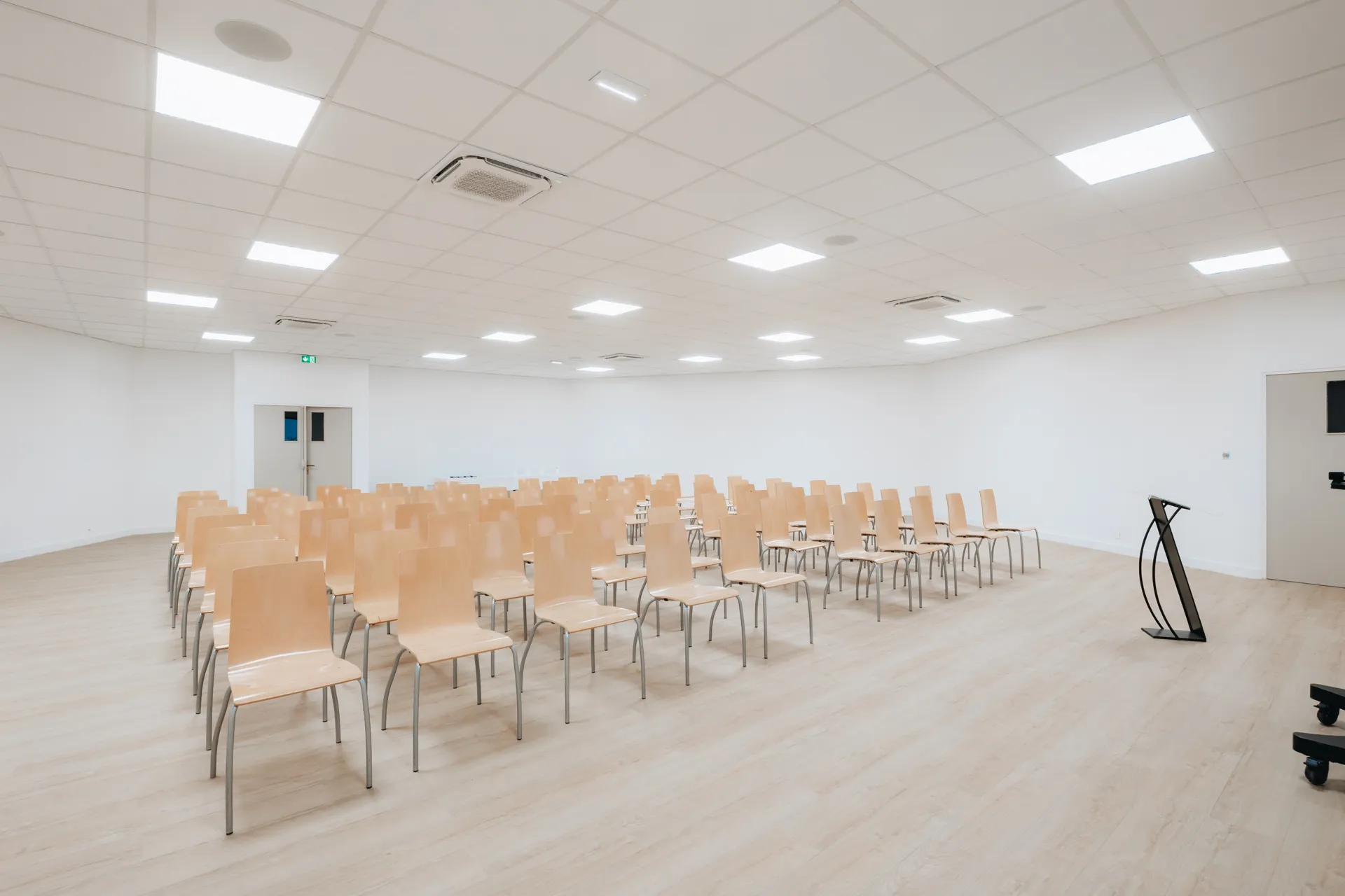 Nos salles plénières peuvent être configurées de diverses manières (écolier, banc d'école, théâtre, U etc.)