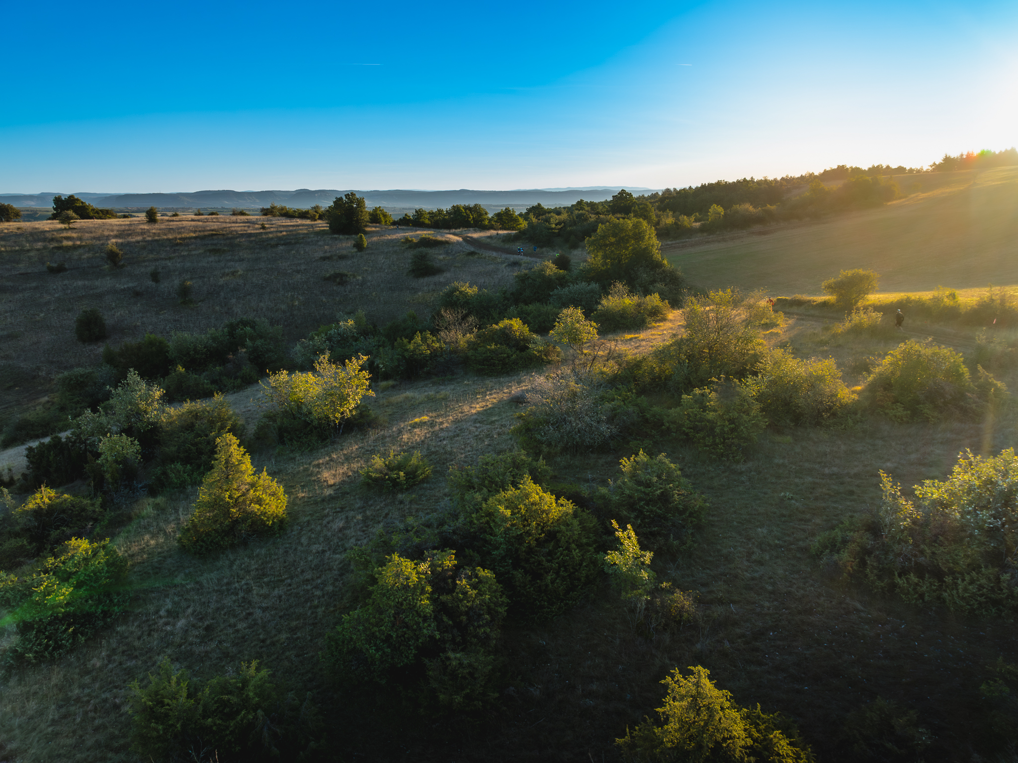 Par des sentiers boisés, gagnez le plateau de la Loubière, majestueuse frontière naturelle entre la vallée de Sorgues et le Rougier de Camarès, qui offre des vues étonnantes sur ces deux paysages
