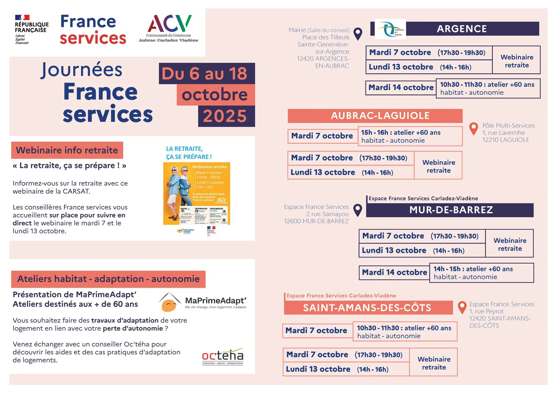 Journées France Services1, rue Peyrot12460 Saint-Amans-des-Côts lat. 44.6864 - lon. 2.66124