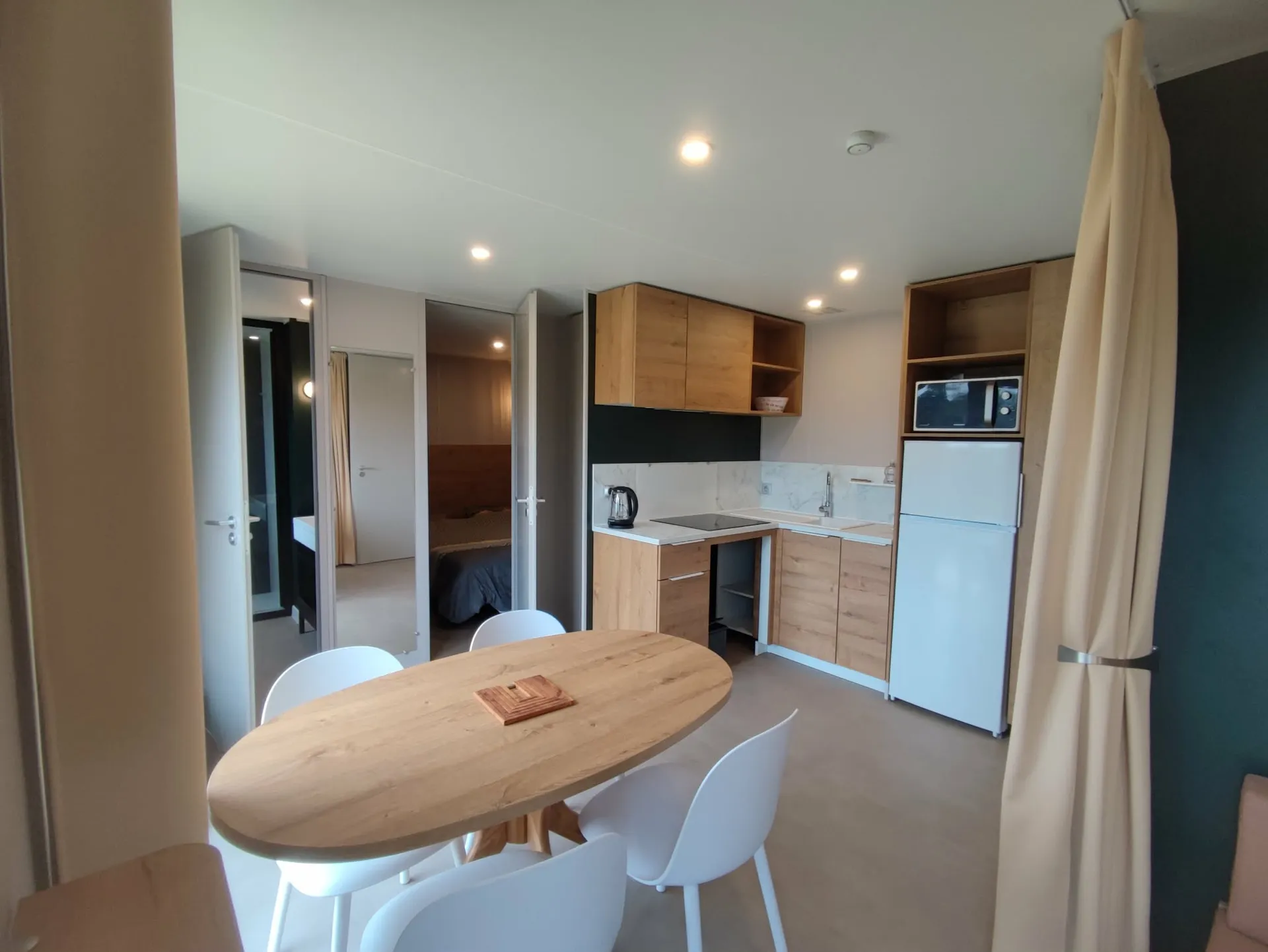 At 640m high over an area of 3 hectares, overlooking the lake.Fishing, swimming pool, marked shady pitches, 5 comfortable chalets to rent, washing machine. At 5minutes: medieval village, shopping, footpaths "Sentiers de l'Imaginaire" activities, woods, rivers, fitness centre 8 km away.
